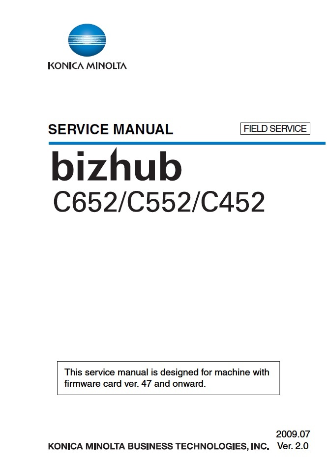 SERVICE MANUAL for Konica Minolta Bizhub C652, C552 & C452